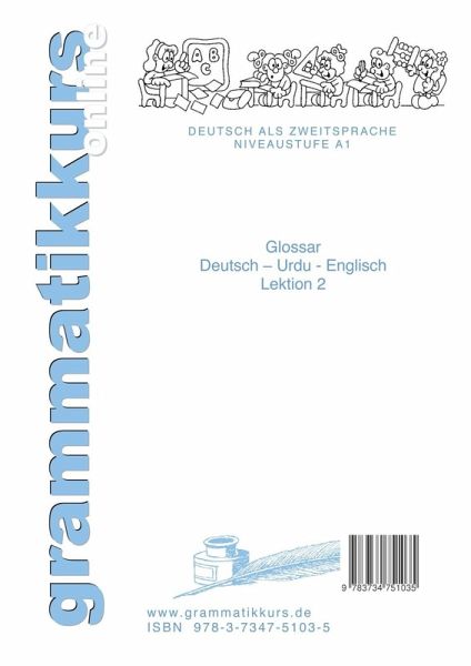 BuchbeschreibungSprachkurs A1 DEUTSCH zum erfolgreichen SelbstlernenA1 - Deutsch + deutsche GrammatikDer A1 - Wortschatz enthält zusätzlich zur Übersetzung ins URDU + Englisch folgenden DEUTSCHE Grammatiken.Substantive/NomenArtikeln (der-die-das)Pluralformen, -endungen und Regeln zur PluralbildungFällen (Nominativ, Genitiv, Dativ, Akkusativ)VerbenInfinitivStammvokalwechsel in verkürzter Form (z.B. a - i - a für fangen - fing - gefangen)Konjugationsnummer: Mit Hilfe dieser Nummer lassen sich alle Verben, die in der alphabetischen Verbliste am Ende des Buches PONS Verbtabellen Plus DEUTSCH aufgelistet sind, dem jeweils entsprechenden Konjugationsmuster zuordnenStammformen: Die meisten Konjugationsformen der unregelmäßigen Verben lassen sich aus diesen drei Stammformen ableiten: 1. Stammform : Infinitiv2. Stammform: 1. Person (ich) Singular Präsens3. Stammform: 1. Person (ich) Singular Präteritum4. Stammform: 1. Person (ich) Perfekt / Partizip IIAngaben überhaben oder seinreflexive VerbformenPräfixen und Trennbarkeit von PräfixenModalverbenBeispiele / Anmerkungen / BesonderheitenAdjektiveSteigerungsformenAntonyme (Gegenteile: hart - weich)Beispiele / Anmerkungen / BesonderheitenSonstige WortartenAdverbien; Interjektionen; Konjunktionen; Numerale; Präpositionenjeweils mit Beispielen, Anmerkungen, Besonderheiten