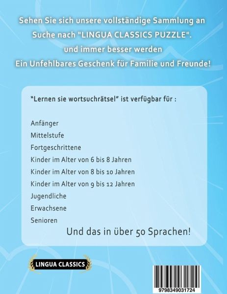 * MOTS MÊLÉS XL GROS CARACTÈRES - Profitez des puzzles les plus faciles à lire sur le marché pour reposer vos yeux. Amusez-vous avec plus de 100 puzzles pour conserver un esprit clair et affuté ! Un CADEAU IDÉAL pour apprendre ou pratiquer une langue. Un livre qui vous offre + de 40 heures de divertissement et d’entrainement intellectuel avec : - 100 GRILLES AU FORMAT A4 : Conçues pour la meilleure lisibilité possible - IMPRIMÉ SUR DU PAPIER HAUTE QUALITÉ : L'encre ne traverse pas (surligneurs ou feutres) - POUR TOUT ÂGE (15-99 ANS) : Plus de 2000 mots sélectionnés avec soin - FEUILLETEZ : Pas de mauvaises surprise, parcourez le livre en cliquant sur la couverture - SOLUTIONS SIMPLIFIÉES : Solutions disponibles dans un format simple et clair - FACILE & INTERMÉDIAIRE : Suffisamment difficile pour s’amuser, et simple pour être divertissant Le Meilleur Choix Pour Entrainer Votre Intellect Et Développer Un Esprit Agile Tout En Vous Amusant ! ------- [ENGLISH] ------- Note: Some content in English might be missing due to length restrictions. * XL WORD SEARCH WITH SUPER LARGE PRINT IN JAPANESE - Give Your Eyes a Rest with the Easiest to Read Puzzles on the Market! Entertain your brain with 100 puzzles to keep it sharp and quick! The Ideal Gift to Learn or Practice a Language. With +40 hours of entertainment, this is The Word Search Game you were looking for: - 100 PUZZLES IN FULL PAGE FORMAT: Designed for the best readability possible. - PRINTED ON HIGH QUALITY PAPER: Use highlighters or pens, no bleed through - FUN FOR ALL AGES (15-99 YEARS): Enjoy a curated selection of +2000 words - BOOK PREVIEW AVAILABLE: No surprise, click on the cover to Look inside the book - EASY MATCH SOLUTION: Solutions in a clear and simple format - EASY & INTERMEDIATE LEVEL: Difficult enough to be challenging, easy enough to be addictive Get it now to keep your brain fit and strong while having fun!