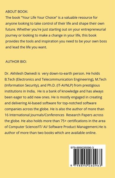 The book "Your Life Your Choice" is a valuable resource for anyone looking to take control of their life and shape their own future. Whether you're just starting out on your entrepreneurial journey or looking to make a change in your life, this book provides the tools and inspiration you need to be your own boss and lead the life you want.