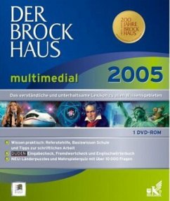 Im "Brockhaus multimedial 2005" einfach einen Begriff eintippen, "Enter" drücken und der passende Brockhaus-Artikel wird angezeigt. Aber damit nicht genug: Komplexe Sachverhalte werden multimedial mithilfe von Animationen, Videos, Schaubildern oder Tondokumenten erklärt, Querverweise werden einfach per Klick aufgeschlagen und inhaltliche Bezüge im Wissensnetz dargestellt. Der umfassende Schulbereich hilft beim Erstellen von Referaten und Hausarbeiten und bei der Vorbereitung auf Prüfungen. Insgesamt rund 10 Millionen Wörter + 240.000 Artikel und 315.000 Stichwörter + NEU: Alle Informationen zu einem Thema im Themenbildschirm + NEU: Spielerisch die Geografiekenntnisse testen mit dem Länderpuzzle + NEU: Wie verfasst man wissenschaftliche Arbeiten? Hilfe gibt es auch im Schulbereich + NEU: Gegeneinander antreten im Quiz mit mehr als 10.000 Fragen + Weltatlas mit 2 Millionen Einträgen und einzigartigem Höhenmodell der Erde + Mehrere Stunden Ton, Videos und Animationen + Duden-Oxford Großwörterbuch Englisch-Deutsch/Deutsch-Englisch