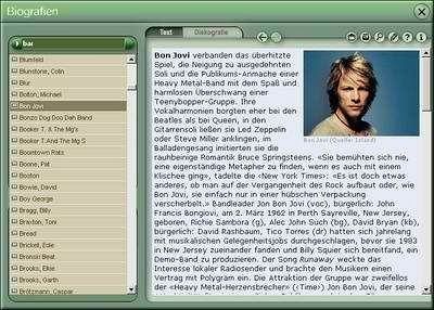 Sounds, Stars, Szenen, Kampagnen, Hypes, Ikonen des Zeitgeists: Dieses einzigartige Werk bietet einen umfassenden Überblick über alle Künstler und Titel der Rock- und Popmusik. Eine ausgezeichnet sortierte Musikdatenbank enthält alle aktuell lieferbaren Alben mit Angaben zu allen Titeln, Cover sowie mindestens ein Musiksample zu jedem Album.