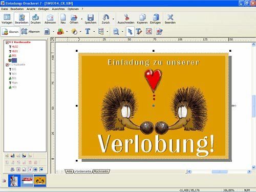 6.000 einladende Vorlagen in unterschiedlichen Formaten 15.000 hochwertige Fotos, Bilder und Cliparts für eigene Entwürfe Baukastensystem für den Entwurf individueller Einladungskarten Blitzschnelle Vorschau von Vorlagen mit eigenen Fotos Bild-Assistent zur mühelosen Optimierung von Farbe, Kontrast & Co. Zahlreiche kreative Mal- und Zeichenwerkzeuge Professionelle Rahmen, Filter, Freistell- und Auswahlwerkzeuge Favoritenleiste für den fixen Zugriff auf Ihre Lieblingsdokumente Adressverwaltung mit Importmöglichkeit aus MS Outlook & Co. Text-Assistent mit direkt einsetzbaren Textbausteinen. Erinnerungsfunktion "Denk dran!" für wichtige Ereignisse und Termine Profi-Druckfunktion mit Schnittmarken und Seriendruck E-Mail-Versand mit Puzzle, Animationen und Sounds