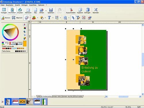 Entweder greifen Sie bequem auf eine von 6.000 professionell gestalteten, druckfertigen Vorlagen zurück, die sich nach Belieben editieren lassen. Oder Sie entwerfen nach dem Baukastenprinzip mit wenigen Klicks individuelle Designs. Einfach den Anlass und das Kartenformat wählen, Bildmotive und passende Textbausteine aus der integrierten Datenbank oder eigene Fotos einsetzen, Empfänger und Absender festlegen, fertig. Eine innovative Bildertauschfunktion ermöglicht die schnelle Vorschau von Vorlagen mit eigenen Bildern. Die Bildbearbeitung mit integriertem Bild-Assistent macht die kreative Motiv-Optimierung mit zahlreichen Mal- und Zeichenwerkzeugen, Filtern, Stempeln, Freistell- und Auswahlwerkzeugen zum Vergnügen. Und die Favoritenleiste erlaubt Ihnen jederzeit den direkten Zugriff auf Ihre Lieblingsdesigns.