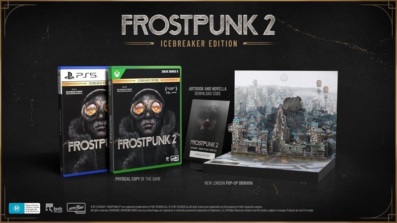 2. Einen Code für das offizielle Artbook von Frostpunk 2, das einen exklusiven Blick hinter die Kulissen der Entstehung des Spiels bietet und Entwürfe, Skizzen und mehr zeigt.