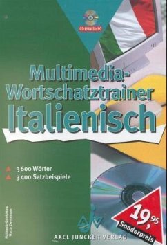 Mit diesem kompakten Wortschatztrainer für Reise, Beruf und Schule können Sie schnell und effektiv Ihren italienischen Wortschatz trainieren und testen. Diese CD-ROM enthält die rund 3600 wichtigsten Wörter der italienischen Sprache, aufgeteilt in Basdis- und Aufbauwortschatz und systematisch nach Sachgebieten geordnet. Ergänzt wird der Wortschatz durch rund 3400 Satzbeispiele. Alle Wörter und Sätze sind vertont. Intelligenter Vokabeltest, Druckfunktion, Lernstatistik und Glossar runden das Programm ab. R Systemvoraussetzungen: S PC 486/60 MHz oder höher, Windows 95/98, NT, mind. 8 MB Arbeitsspeicher, VGA-Grafikkarte, mind. 256 Farben (800 x 600 Bildpunkte), 16-Bit-Soundkarte, mind. double speed CD-ROM-Laufwerk, Maus, Lautsprecher oder Kopfhörer.