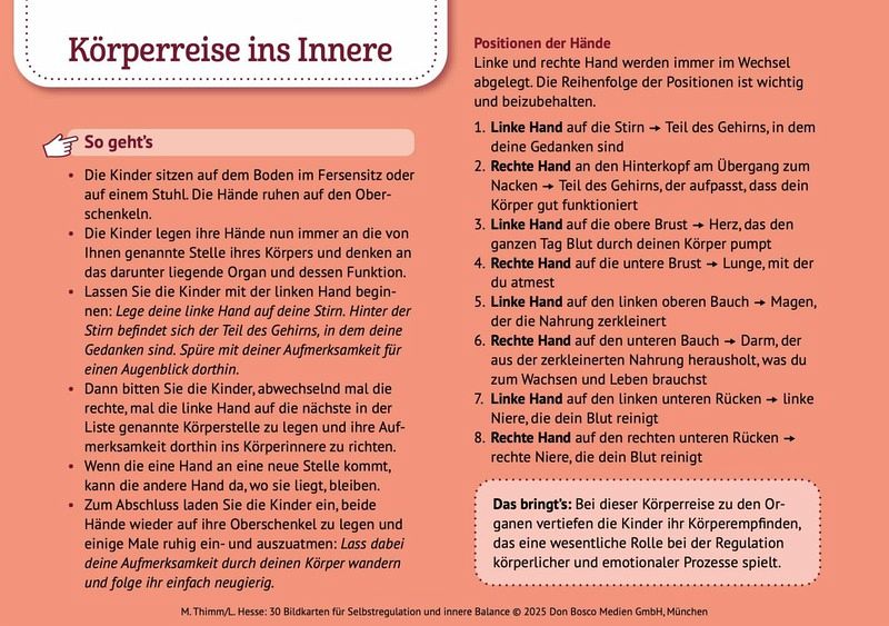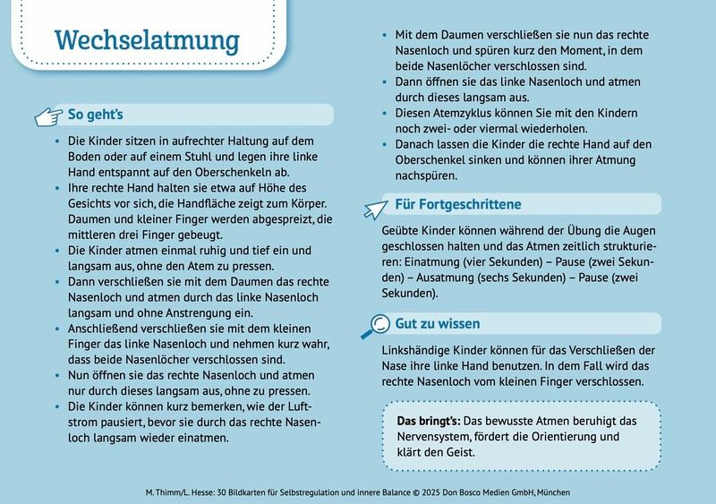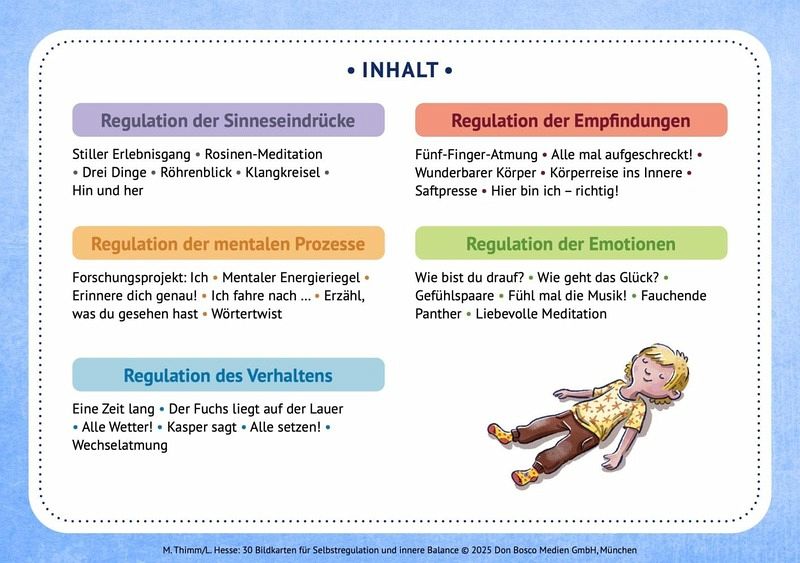 Im hektischen Alltag ist es bereits für Kita- und Schulkinder wichtig, das richtige Werkzeug zu haben, um auch in schwierigen Situationen die innere Balance zu behalten. Dieses Bildkarten-Set bietet zahlreiche praxiserprobte und kindgerechte Methoden, die dabei helfen.