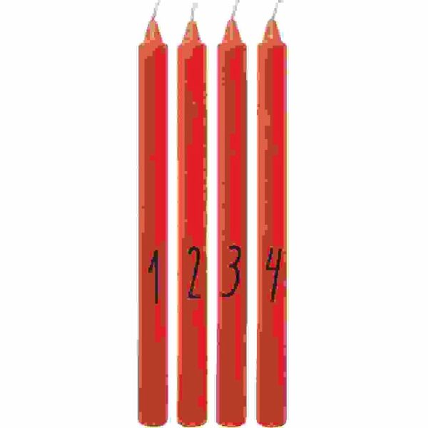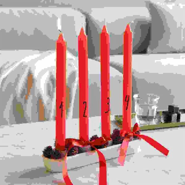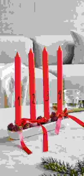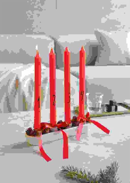 Dieses Adventskerzen-Set eignet sich perfekt für selbst gestaltete Adventskränze und weihnachtliche Dekorationen. Mit einem Durchmesser von 2,2 cm und einer Höhe von ca. 28 cm passen die Kerzen in gängige Kerzenhalter oder lassen sich in Sand oder einer dekorativen Schale arrangieren. Das schlichte und stilvolle Design macht sie zu einem stimmungsvollen Element in der Adventszeit. - Adventskerzenset mit Zahlen von 1-4 - Größe: Ø2,2x28 cm - Inhalt: 4 Stück