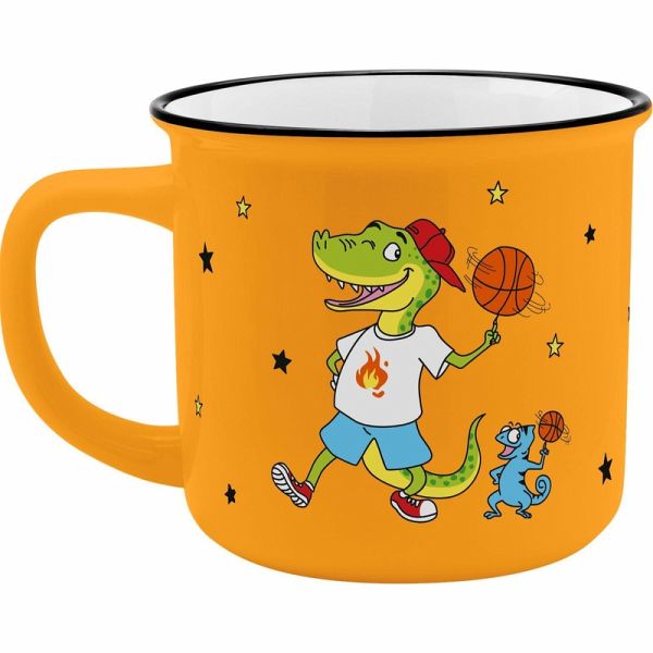 Der Becher in Emailleoptik mit dem fröhlichen Motivdruck ist eine schöne Überraschung zum Schulstart.
