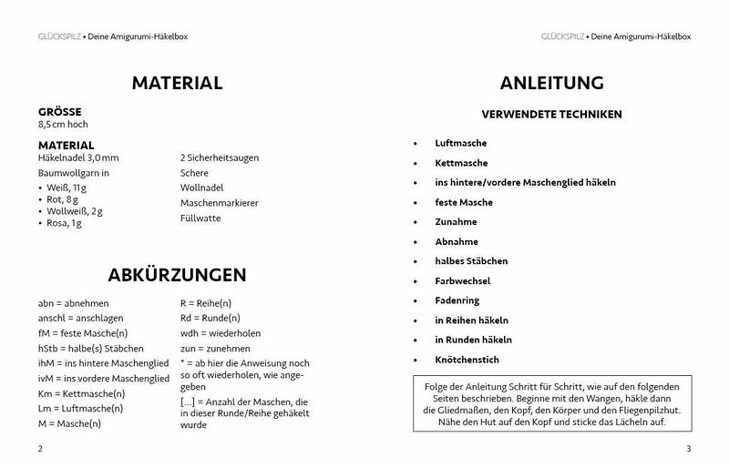 Mit dieser Amigurumi-Häkelbox steht deiner kreativen Auszeit nichts im Wege! Alles, was du für den süßen Glückspilz im Amigurumi-Stil benötigst, ist in diesem Set enthalten: die Anleitung, Garn aus 100% Baumwolle in 4 Farben, eine Häkelnadel 3,0 mm aus Metall, 1 Paar Sicherheitsaugen sowie Füllwatte. Entworfen wurde der Glückspilz von der beliebten Häkeldesignerin Annick Ly alias @a.p.i.l.y. - super niedlich! Deine Häkelbox für einen zuckersüßen Amigurumi-Glückspilz - zum Sofort-Loslegen.