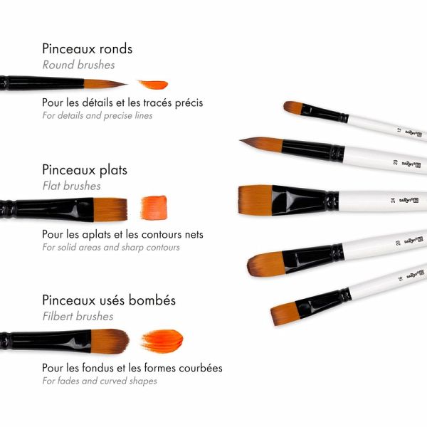 Darwi For You, Set mit 5 breiten Pinseln Die Darwi For You-Pinsel mit weichen, 100% synthetischen Borsten wurden speziell für die Acrylmalerei entwickelt. Die Darwi For You-Pinselsets gibt es in 3 Varianten: feine Pinsel, mittelgroße Pinsel und breite Pinsel. Mit abgestuften Borsten. Die lackierten Griffe erleichtert die Reinigung. Die Griffe der Darwi For You-Pinsel sind für Acrylfarbe geeignet und werden aus FSC-Holz hergestellt, für eine verantwortungsvolle W aldwirtschaft.