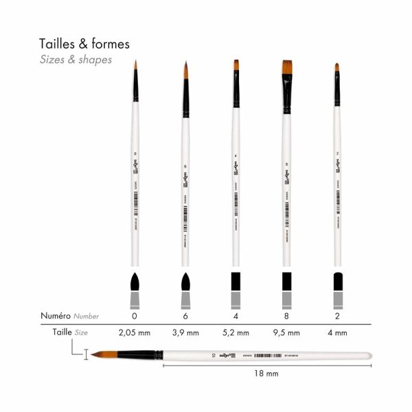 Darwi For You, Set mit 5 feinen Pinseln Die Darwi For You-Pinsel mit weichen, 100% synthetischen Borsten wurden speziell für die Acrylmalerei entwickelt. Die Darwi For You-Pinselsets gibt es in 3 Varianten: feine Pinsel, mittelgroße Pinsel und breite Pinsel. Mit abgestuften Borsten. Die lackierten Griffe erleichtert die Reinigung. Die Griffe der Darwi For You-Pinsel sind für Acrylfarbe geeignet und werden aus FSC-Holz hergestellt, für eine verantwortungsvolle W aldwirtschaft.
