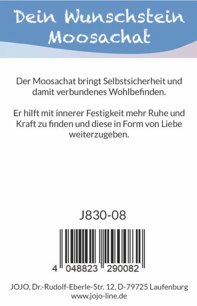 Persönlicher Wunschstein Moosachat-Mut, Schöner, flacher Edelstein, liegt gut in der Hand. Ideal auch zum Tragen in der Hosentasche mit Erklärungskarte.