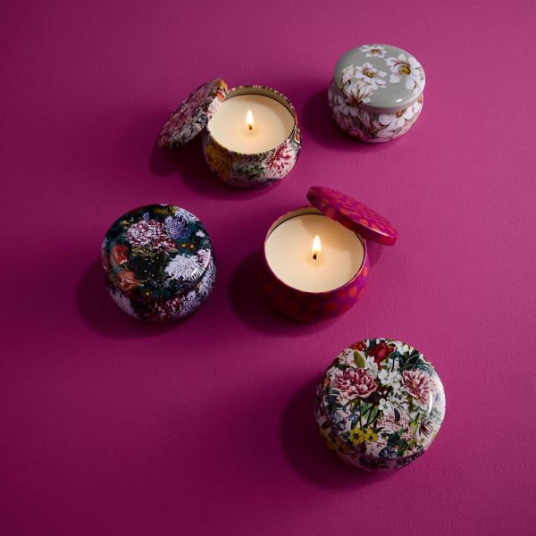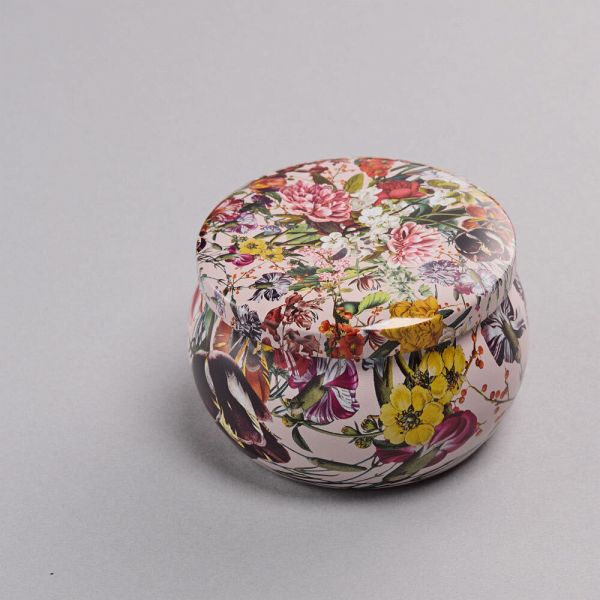 Kerze in Metalldose mit Deckel, 100% Sojawachs, Duft: Rose, Brenndauer ca. 25 Stunden