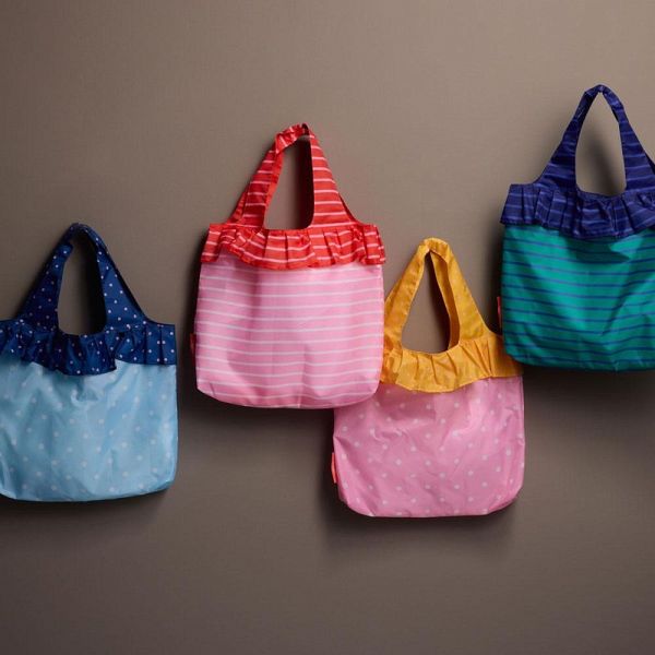 Einkaufsbeutel mit umlaufender Rüsche, Größe 48,5 cm x 40 cm, separate Reißverschlusstasche 20 x 13,5 cm Hochwertiges Polyestergewebe recycled PET Gewicht 63 g wasserabweisend, waschbar