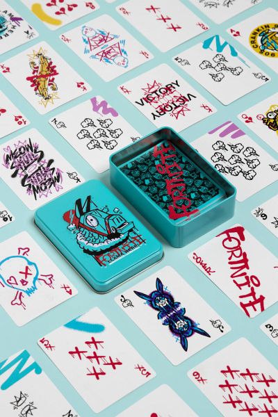 In der passenden Aufbewahrungsbox findest du ein Standardkartenspiel mit lebendigen Designs im Graffiti-Stil, die von der Welt von Fortnite inspiriert sind. Jede Karte sprüht vor Farbe und epischem Artwork und bietet dir bei jedem Umdrehen ein Battle-Royale-ähnliches Erlebnis.