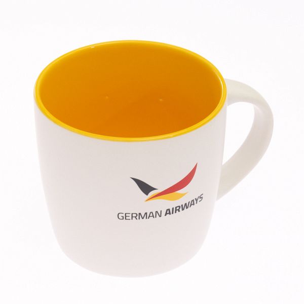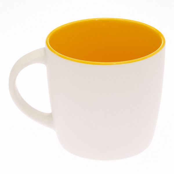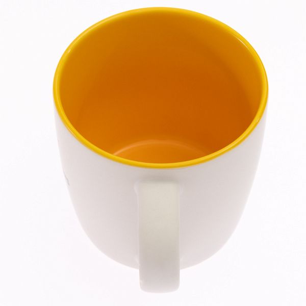 Die stilvollen Becher mit einer mattweißen Außenseite mit Logodruck und der leuchtend gelben Innenseite haben ein außergewöhnliches Design. Besonders auffällig ist auch die konvexe Form der Tasse. Die Tasse fasst 300 ml und hat eine Höhe von 8,5 cm und einen Durchmesser von 9 cm. Sie ist außerdem spülmaschinenfest und kann daher schnell und einfach gereinigt werden.