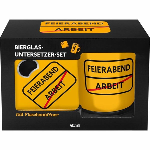 Der Geschenkartikel mit dem lustigen Motiv "Feierabend" ist ein passendes Männergeschenk, zum Beispiel zum Geburtstag.