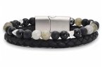 "Fashion Beads Herren Armbänder" Armbandlänge: 21cm + Verlängerung Verschluss aus magnetischem Edelstahl. Es wird jeweils ein zweites Verschlussstück geliefert, mit dem das Armband bei Bedarf vergrößrrt werden kann. J966-01 Golden Sun: Tigerauge & Onyx J966-02 Golden Spirit: Tigerauge & Onyx J966-03 Mystick Black: Labradorit, Onyx & Hämatit J966-04 Green Mamba: Malachit & Onyx J966-05 Royal Blue: Lapislazuli & Hämatit J966-06 Black Star: Onyx & Hämatit J966-07 Blue Beads: Sodalith, Hämatit & Tigerauge J966-08 Majestic Grey: Achat, Lavastein & Hämatit J966-09 Rainbow Style: Achat, Onyx &…mehr