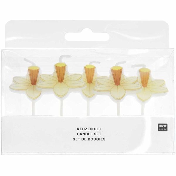 Kerzen dürfen auf keiner Geburtstagtorte fehlen! Doch auch auf anderen Feiern, wie zum Beispiel Hochzeiten oder Taufen, sind passende Kerzen echte Stimmungsmacher. - Inhalt: 5 Kerzen- Motiv: Osterglocken- Material: Paraffin WachsSicherheitshinweise:Brennende Kerze nie ohne Aufsicht lassen! Kerze außer Reichweite von Kindern und Haustieren aufstellen! Abstand zwischen brennenden Kerzen lassen! Kerzen nicht in der Nähe von brennbaren Gegenständen abbrennen!