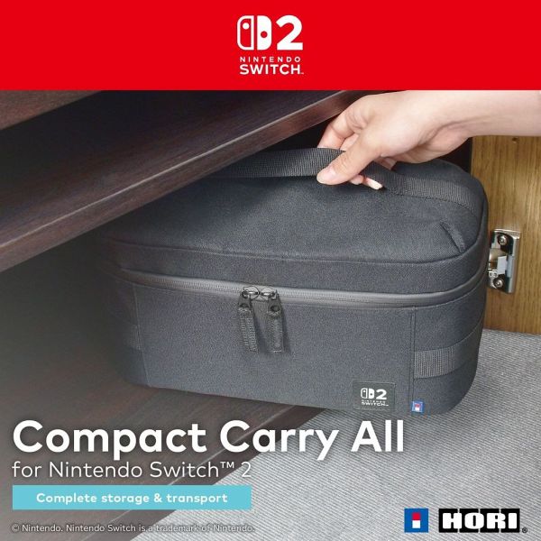 Wir stellen HORIs kompakte Carry-All Tragetasche in Schwarz für die Nintendo SwitchTM 2 vor. Verstaue sicher deine Konsole, Station, Netzteil und zusätzliche Controller und anderes Zubehör in fünf großräumigen und größenverstellbaren Fächern. Kompatibel mit Nintendo Switch 2, Nintendo Switch und Nintendo Switch - OLED-Modell. Offiziell lizenziert von Nintendo®.