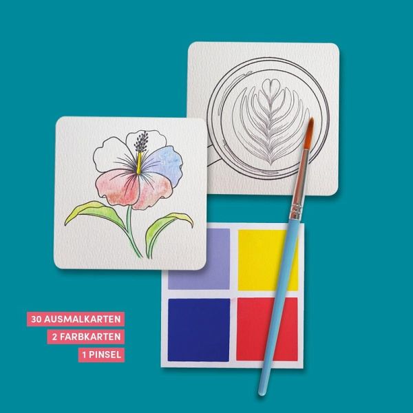 Anleitungsheft mit Watercolor-Tipps und -Techniken30 Ausmalkarten4 Watercolor-Farbkarten1 Pinselhandliche Box - ideal zum Mitnehmen & Aufbewahrenperfektes als Geschenk für kreative Bastler:innen & Watercolor-Fans