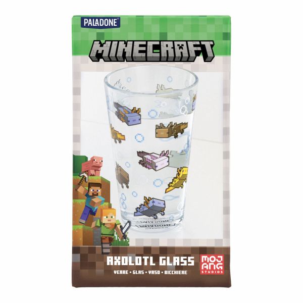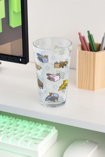 Mit diesem coolen Axolotl-Glas kannst du direkt aus den üppigen Unterwasserhöhlen von Minecraft trinken. Das 400 ml (14 fl oz) fassende Trinkglas zeigt ein sich wiederholendes Muster aus rosafarbenen leuzistischen, braunen wilden, goldgelben und blauen Axolotls aus dem Spiel. Mit dem um das Glas gewickelten Design kannst du bei jedem Schluck einen Hauch von Minecraft genießen.
