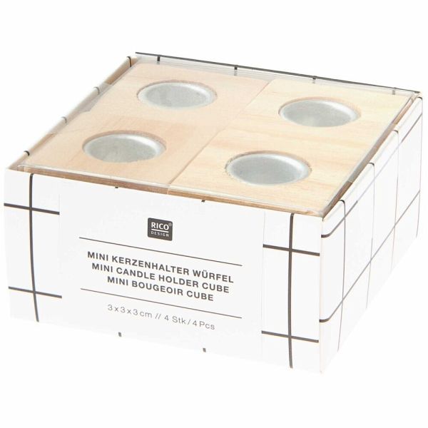 Diese kleinen Kerzenhalter eignen sich perfekt zum Dekorieren, nicht nur in der Weihnachtszeit. Sie können mit diesem Viererset auch wunderbar kreativ werden und die Holzwürfel bemalen oder mit Paper Patch verzieren. Damit erschaffen Sie einzigartige, persönliche Dekostücke zum Weiterverschenken oder Behalten.- ideal zum Gestalten und Dekorieren