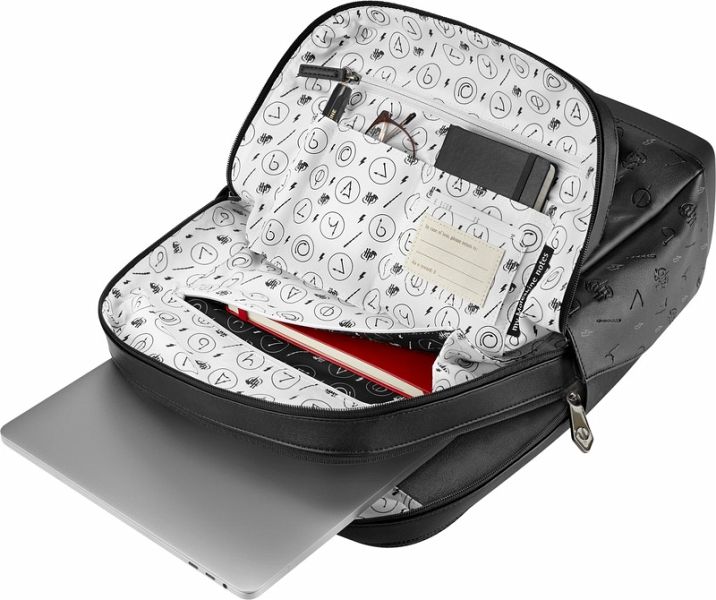 Der beliebte PRO-Rucksack trifft auf die zauberhafte Welt. Das Äußere dieses Rucksacks ist mit geprägten Harry Potter-Grafiken und Blitze, die im Dunkeln leuchten, Innen ist ein Futter mit aufgedruckten Zauberstabbewegungen Zauberstabbewegungen bedruckt ist, die dir helfen, deine Zauberkünste zu verbessern. Außerdem kannst du damit deine Leidenschaft für alles, was mit Potter zu tun hat, zum Ausdruck bringen, jedes Detail dieses praktischen Rucksacks hilft dir beim Sortieren und die Dinge zu sortieren und zu transportieren, die du zum Arbeiten und Lernen brauchst. Er besteht aus zwei Hauptfächer, darunter eine eingebaute Schutzhülle für dein Tablet oder Laptop sowie eine Tasche, die die perfekte Größe für ein ein XL-Moleskine-Notizbuch. Außerdem gibt es ein gepolstertes Fach für ein gepolstertes Brillenfach und ein Fach für ein kleines Notebook, sowie und ein Außenfach auf der Vorderseite für die wichtigsten die Sie immer in Reichweite haben müssen. Der atmungsaktive Netzrücken und die gepolsterten Gurte sorgen für zusätzlichen Komfort für unterwegs. Mit dem Gepäckriemen auf der Rückseite können Sie können Sie den Rucksack auf Reisen sicher am Griff Ihres Koffers befestigen. auf Reisen. Dieser Harry Potter PRO-Rucksack ist so konzipiert, dass er alles enthält mit allem, was du zum Denken, Arbeiten und Gestalten unterwegs brauchst. unterwegs. Dank der geprägten Wizarding World-Grafik und der leuchtenden Elementen verleiht er deinem Alltag einen Hauch von Magie. Alltag. Externe Merkmale - Individuell gestaltete, im Dunkeln leuchtende Alohomora-Reißverschlussabzieher - leuchtet im Dunkeln: einige Minuten lang unter eine Lampe halten. Je länger die Zeit, desto besser leuchtet er! - Tragegriff aus Gurtband an der Oberseite - dehnbare Seitentaschen über die gesamte Länge - Reißverschlusstasche auf der Vorderseite - verstellbare Rucksackgurte und atmungsaktiver Netzrücken - Gepäckgurt - Außen: 70% Polyurethan 30% Polyester - Boden: 90% Polyethylen 5% Polyurethan 5% Polyester Interne Merkmale zwei Hauptfächer mit Reißverschluss mit: - gepolstertes Laptop-Fach: 28 x 37 cm / 11,3 x 14,6" - versteckte Klappentasche für XL-Notebook - Stifthalter, gepolstertes Brillenfach und Fach für ein kleines Notizbuch - weißes Innenfutter (für eine bessere Sicht auf die Sachen) mit Gesten und kontrastierenden schwarzen Taschen (100% Polyester) - Volumen: 13,5 L