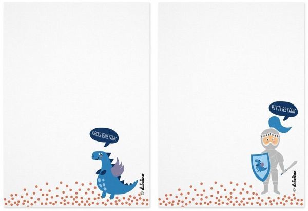 Dieses 2er Set Notizblöcke für Kinder der Marke dabelino mit Ritter und Drache als Motiv verschönert den Alltag von Jungen und Mädchen und ist ein super Geschenk für alle kleinen und großen Ritter-Fans, wenn es mal nur eine Kleinigkeit sein soll.