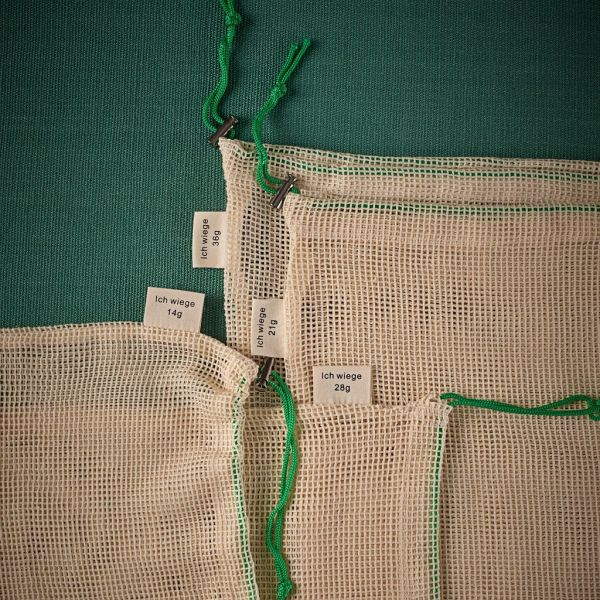 Inhalt: 6 Stück (1 x S, 2 x M, 2 x L, 1 x XL); Material: Baumwolle; Dimension: Small: 18 cm x 23 cm, Medium: 25 cm x 30 cm, Large: 30 cm x 35 cm, Extra Large: 35 cm x 40 cm Eigenschaften: Ersetzten Einweg-Plastiktüten, geeignet für kleine als auch für große Einkäufe, sehr hochwertig verarbeitet Mit den hochwertigen Obst- und Gemüsebeuteln von Io Nova zeigen Sie Plastik- und Einwegtüten die rote Karte. Die hochwertig verarbeiteten und stabil vernähten Beutel eignen sich sowohl für kleine als auch für große Einkäufe im Supermarkt, auf dem Wochenmarkt oder in Ihrem Unverpackt-Laden um die Ecke. Jeder Beutel ist dafür mit einer Gewichtsangabe auf einem Etikett versehen und besitzt einen hochwertigen Kordelzug, damit Sie Ihre Einkäufe jederzeit sicher transportieren können. Um unnötigen Wasserverbrauch zu vermeiden, empfehlen wir Ihnen, die Gemüsenetze vor dem Waschen mehrmals zu benutzen. Jedes Set enthält zusätzlich einen Saisonkalender damit Sie immer wissen, welches Obst und Gemüse aktuell Saison hat. Anwendung: Auspacken, Einkaufen & dauerhaft Plastikmüll vermeiden. Pflege: Die Obst- und Gemüsebeutel können in der Waschmaschine bei bis zu 40° C im Kurz- oder Sparprogramm gewaschen werden.