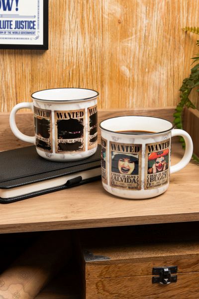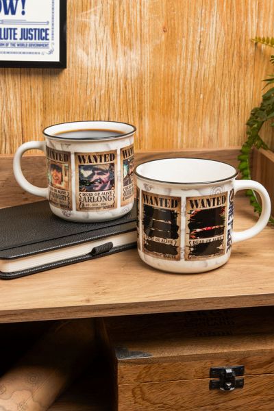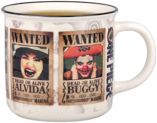 Der 350 ml (11 fl oz) große Keramikbecher zeigt mehrere verdeckte Fahndungsplakate. Gieße ein heißes Getränk hinein und beobachte, wie sich das Design des Bechers verändert, während die Gesichter der gesuchten Piraten langsam enthüllt werden.