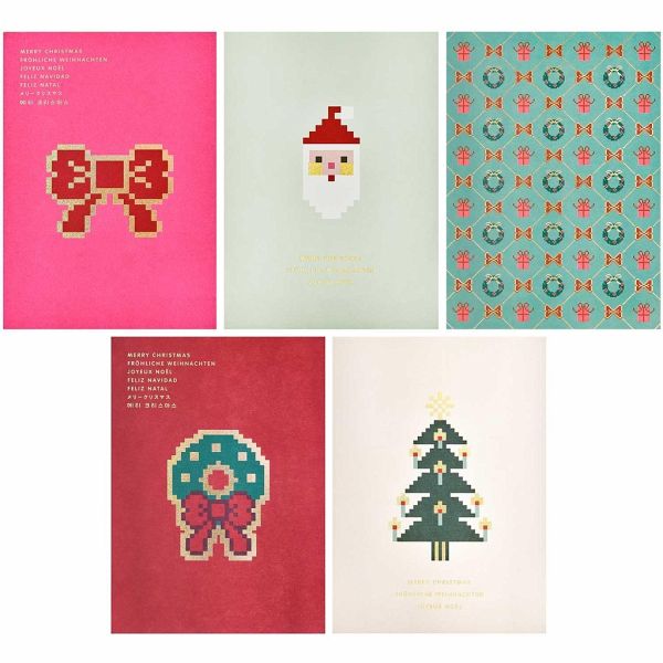 - Postkartenblock mit 5 weihnachtlichen Pixel Motiven