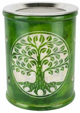 Hochwertiges Speckstein Rauchgefäß mit Sieb, Lebensbaum grün