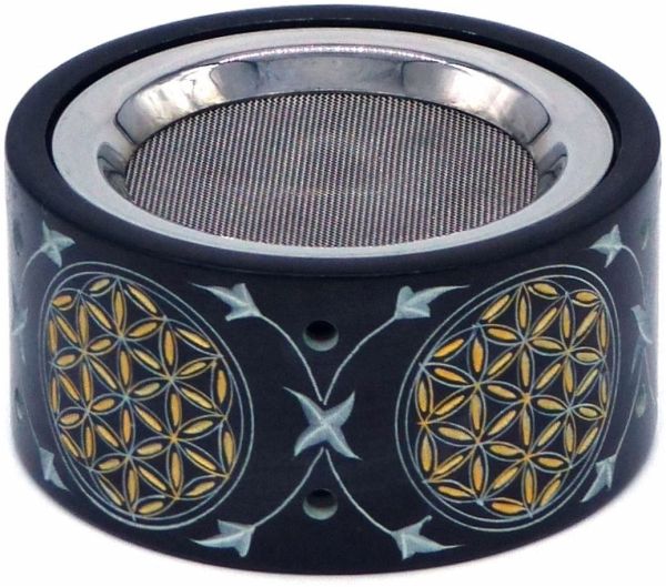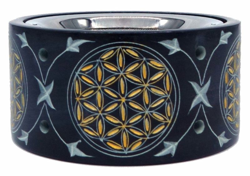 "Kompakte Eleganz - Räuchergefäß 'Blume des Lebens' aus Black Stone"