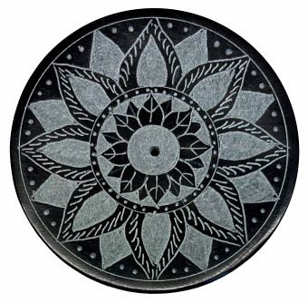 Filigrane Eleganz - Räucherstäbchenhalter "Mandala Blume" aus Blackstone, graviert (Ø 8 cm)