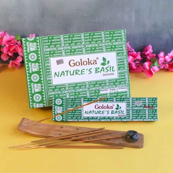 Harmonische Frische Goloka Nature's Basil Incense Tauchen Sie ein in die belebende Frische des Basilikums mit den Goloka Nature's Basil Räucherstäbchen. Der würzig-aromatische Duft entfaltet eine klärende Wirkung auf Geist und Raum und unterstützt eine Atmosphäre der Konzentration und inneren Balance. Ideal für Meditation, Gebet oder einfach zum Durchatmen im Alltag. Ein natürlicher Duftbegleiter für Klarheit und geistige Frische.