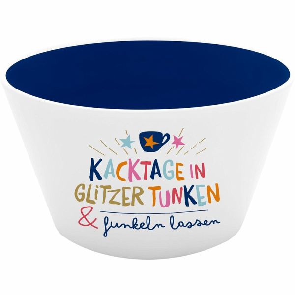 Schale mit Motivdruck 'Kacktage in Glitzer tunken & funkeln lassen" mit blauem Innendruck und Golddruck