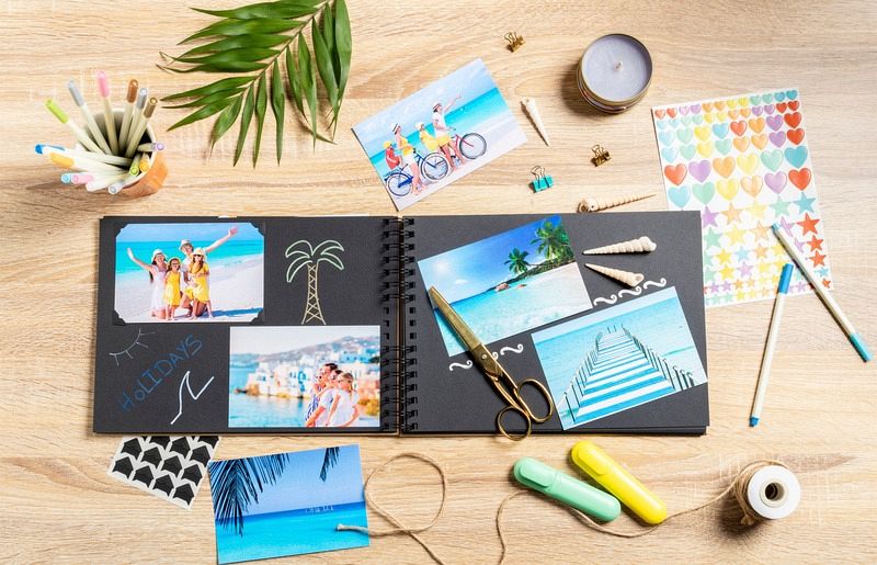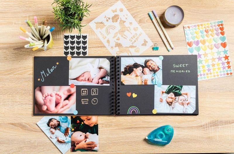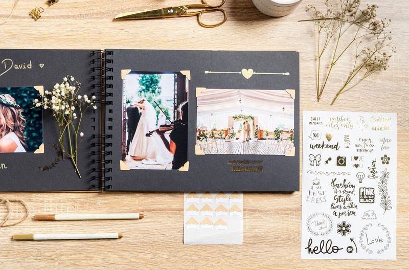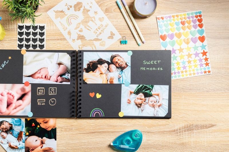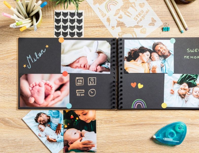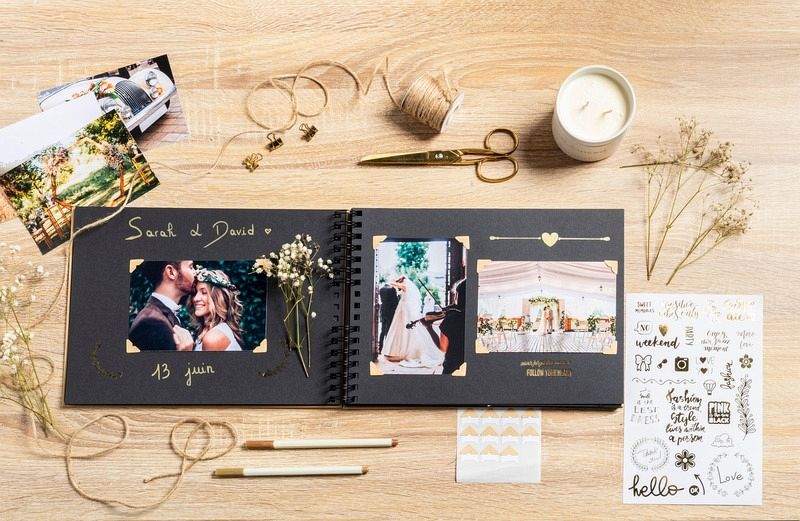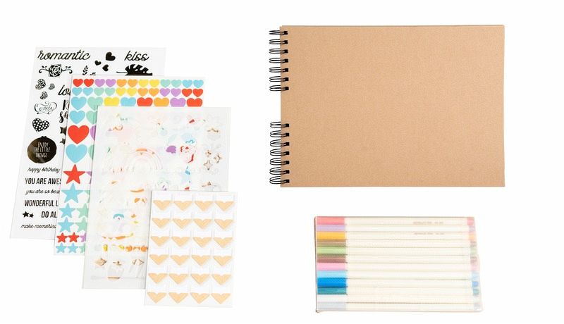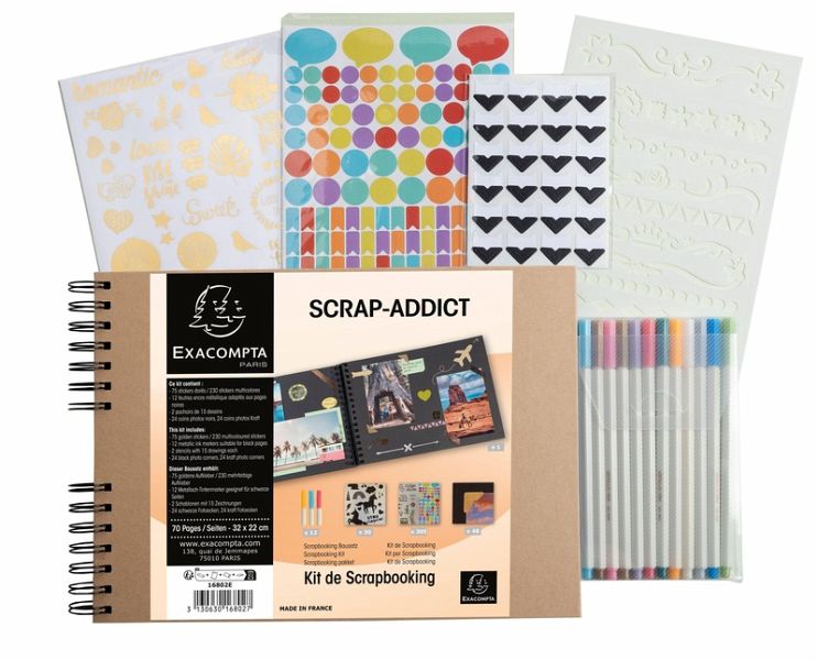 Set Scrapbooking, Album 32x22cm, Kraft, Scrap' Addict Entdecken Sie unser komplettes ScrapAddict Scrapbooking-Set mit einem hochwertigen Kraftspiralalbum und allen Materialien, die Sie benötigen, um Ihre Erinnerungen künstlerisch zu verewigen und Ihrer Kreativität freien Lauf zu lassen. Dieses Set besteht aus: Spiralalbum Kraft mit schwarzen Spiralen 32x22cm mit 70 Seiten aus hochwertigem, in Frankreich hergestellten und ökologisch zertifizierten Papier. Mit einer Gesamtkapazität von 210 Fotos im Format 10x15cm, das eine hervorragende Aufbewahrung der Fotos und einen sehr guten Schreibkomfort gewährleistet. 12 farbige Filzstifte mit Metallic-Tinte, die speziell für das Schreiben auf schwarzem Papier entwickelt wurden. Zwei Stickerbogen mit klassischen pastellfarbenen Motiven und zwei Stickerbogen mit originellen und trendigen goldfarbenen Motiven, insgesamt 300 Sticker. Zwei Stickerbogen mit klassischen, pastellfarbenen Motiven und zwei Bogen mit originellen, trendigen goldfarbenen Stickern. Insgesamt 300 Sticker. Ein Set aus zwei Schablonen mit einem Bogen mit geometrischen Motiven und einem Bogen mit Kindermotiven + ein Set aus zwei Bögen mit kraft- und schwarzfarbigen Fotoecken. Insgesamt 48 Teile.