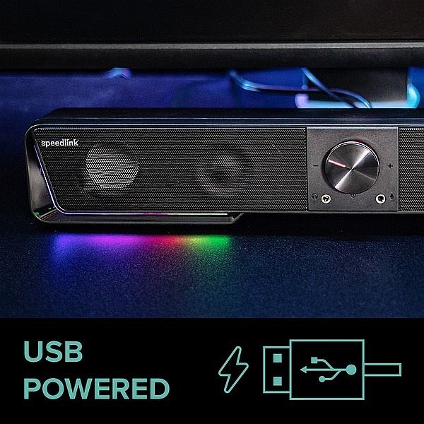 Die GRAVITY RGB Stereo Soundbar erweckt anspruchsvolle Gaming-Klangwelten mit atemberaubender Qualität zum Leben. Begleitet wird der exzellente Stereo-Sound von einer strahlend bunten RGB-Beleuchtung, die für jede Session eine angenehme Atmosphäre schafft. Zwei Anschlüsse an der Vorderseite der Soundbar erleichtern den Einsatz von Kopfhörern und Mikrofonen, sodass lästiges Kabelumstecken am Computer erspart bleibt. Smartphones und Tablets können über Bluetooth® mit der GRAVITY RGB verbunden werden. Somit lassen sich zahlreiche Anwendungen und Medien mit der erstklassigen Akustik des kompakten Soundsystems genießen.