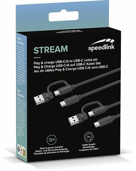 Die STREAM Play & Charge-Kabel bieten maximale Bewegungsfreiheit und gleichzeitiges Laden. Mit dem am Kabel angebrachten USB-C-Adapter können sie flexibel an jede USB-A- oder USB-C-Stromquelle angeschlossen werden, wodurch sie perfekt für PS5-, Xbox- und Switch-Controller geeignet sind und auch mit Smartphones oder Tablets kompatibel sind. Die beeindruckende Kabellänge von jeweils 3 Metern gewährleistet eine flexible Handhabung und garantiert unterbrechungsfreie Action, unabhängig vom Spiel oder Gerät.