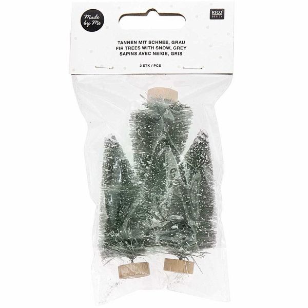 Die Miniaturtannen sind mit weißem Dekoschnee beschneit, wodurch sie besonders winterlich aussehen.