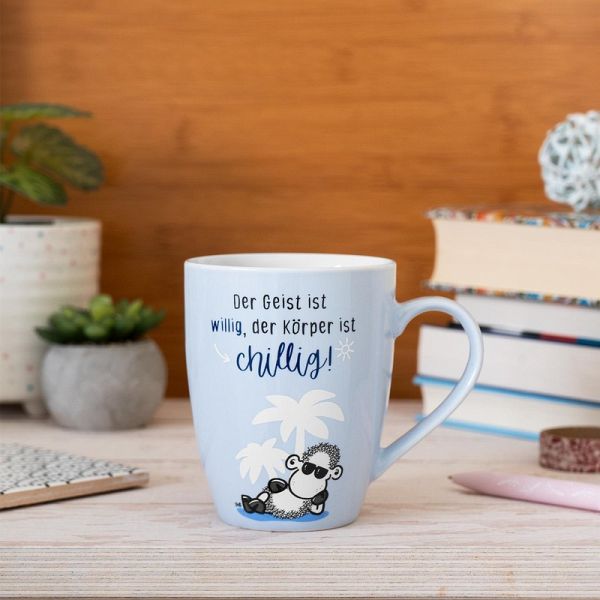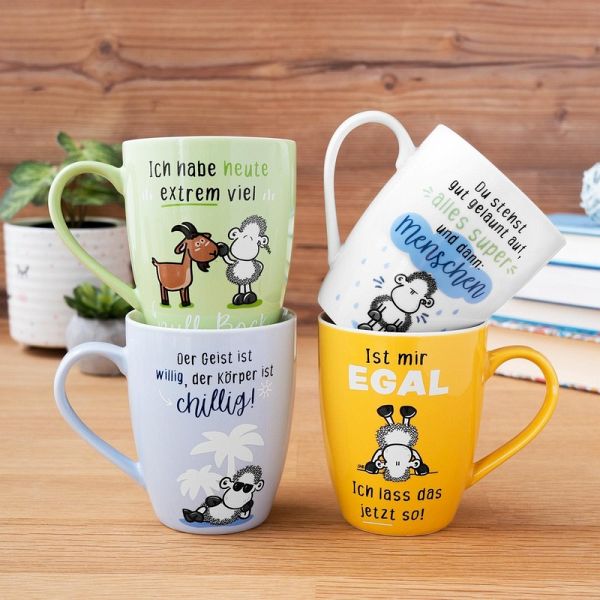 WITZIGE & FRECHE SPRÜCHE: Tassen mit buntem Druck, coolem Cartoon und lustigem Text für einen guten Start in den Tag :-) Diese "Böse Becher"-Tasse bringt einen Farbtupfer und frischen Wind an den gedeckten Tisch, die Kaffeerunde oder ins Büro. SHEEPWORLD TASSE MIT SPRUCH: Herrlich böser Becher, Tasse aus New Bone China Porzellan, Volumen 35 cl, mit Geschenkbanderole und Spruch "Der Geist ist willig, der Körper ist chillig". IDEALES GESCHENK: Als lustiges Geschenk für Familie, Freunde, Kollegin, als Dankeschön, zum Geburtstag oder einfach so als aufmerksames Mitbringsel und als kleine Überraschung. Als witziges Präsent für Freundin, Mama, Papa, Oma, Opa, Bruder, Schwester und für alle anderen Lieblingsmenschen geeignet.