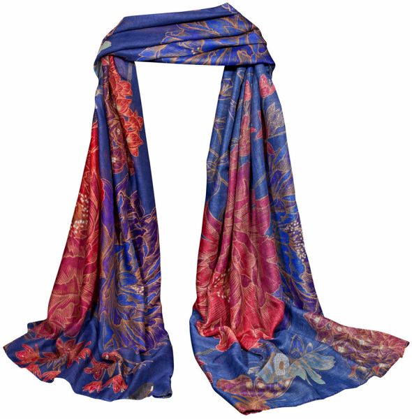 Wenn es an den Tagen im Frühjahr hin und wieder noch etwas kühler ist, kommt eine Halsbedeckung wie dieser wunderschöne Schal gerade recht. Das großzügige Tuch verzaubert sofort mit seinem floralen Charakter und verleiht Ihrem Outfit das gewisse Etwas. Sei es bei einem romantischen Spaziergang, tagsüber im Büro oder in Kombination mit einem eleganten Abendkleid: Das Accessoire mit fantasievollen Blumenverzierungen auf dunkelblauem Untergrund verspricht ein tolles Trageerlebnis für viele Anlässe. Dabei fühlt es sich angenehm weich auf der Haut an und wirkt durch das träumerische Farbenspiel und dem Kontrast zwischen dunklen und hellen Nuancen sehr edel. Dank seiner Größe können Sie das Tuch »Mitternachtsgarten« zudem vielseitig tragen. Diese Vielzahl an Einsatzmöglichkeiten und das stilvolle Design machen es zu einem verlässlichen Begleiter und stylischem Accessoire für die modebewusste Frau. Aber auch als liebevolle Aufmerksamkeit ist dieser Schal eine tolle Idee. (100 % Polyester, 70 × 180 cm, Handwäsche bei 30° C, mit attraktiver Laden-Aufhängung)