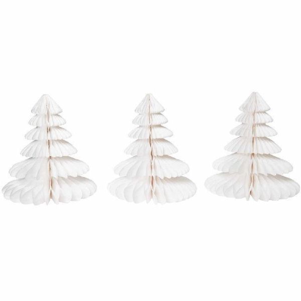 Die Wabenpapier Tannenbäume sind mit einem zierlichen weißen Band versehen, sodass man sie als Weihnachtsdekoration aufhängen kann. Sie lassen sich aber auch hervorragend als Tischdekoration einsetzen.