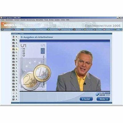 Das bietet das WISO Sparbuch 2007:Erledigt die Einkommensteuer für 2006 - inkl. aller Einkunftsarten, Formulare und Erklärungen. Wahlweise kann die Steuererklärung amtlich anerkannt ausgedruckt oder bequem online per ELSTER abgegeben werden. Hunderte legale Steuer-Tipps von WISO Permanente Steuerberechnung: Sie sehen sofort, wie sich Ihre Eingaben auf die Erstattung oder die Nachzahlung auswirken. Und auch nach Abgabe der Steuererklärung können Sie mit Hilfe der Steuerbescheidprüfung und zahlreichen Musterschreiben sicherstellen, dass Sie erhalten, was Ihnen zusteht. Neu bei WISO: Die Datenschnellübernahme. Wer schon im letzten Jahr mit dem WISO Sparbuch gearbeitet hat, macht seine Steuererklärung jetzt noch schneller. Nur bei WISO: Geben Sie Ihre Daten im Dialog mit den WISO-Redakteuren ein. So WISO-leicht geht die Steuererklärung nirgends Das große Service-Plus: Premium-Coupon zur exklusiven Nutzung von telefonischem Kundendienst, regelmäßigen Programmaktualisierungen und vergünstigtem Bezug von Folgeversionen Das große Ausstattungs-Plus: WISO Steuerfachbuch (640 Seiten) - zum Blättern und Nachschlagenü Das große Software-Plus: Mit dem WISO-Steuerschieber optimieren Sie den Rückerstattungsbetrag schnell und ergebnisorientiert.