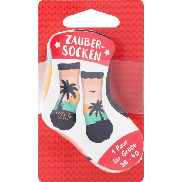Die Zaubersocken mit dem lustigen Motivdruck sind eine tolle Überraschung. Das gepresste Päckchen entfaltet sich, wenn man es für rund 15 Minuten ins Wasser legt.