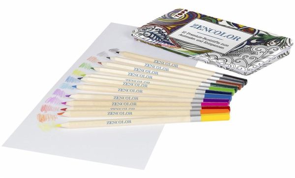 Was uns als Kind gut getan hat, entdecken wir als Erwachsene wieder - Zencolor ist Ausmalen für Erwachsene. In einem nach Zencolor-Art gestalteten Metalletui befinden sich 12 Buntstifte in den beliebtesten Farben, mit denen Sie Ihre eigenen Kunstwerke gestalten und ausmalen können. Die Stifte besitzen eine klassische Sechskantform und tragen durch ihre weiche und bruchsichere Mine zur Ruhe und Entspannung während des Ausmalens bei. Der Schaft ist aus Holz. Ihr Aufruck "Zencolor" macht sie unverwechselbar.