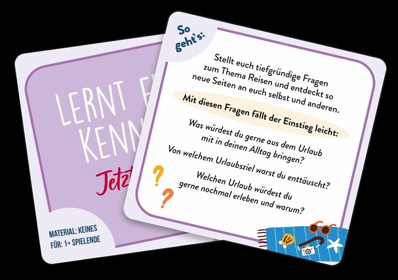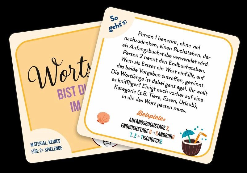Du bist bald im Urlaub, aber schon vorher genervt davon, wie lange die Fahrt dorthin dauern wird? Kein Problem! Mit den Reise-Spielen für Erwachsene in dieser kleinen Dose vergeht die Anreise wie im Flug. Ganz egal, ob ihr mit Auto, Zug, Bus oder Flugzeug unterwegs seid - die Spielideen in diesem Kartenset werden euch bestens unterhalten!