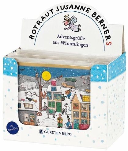 Wer zum Beginn der Adventszeit gern an liebe Leute einen wimmeligen Gruß verschickt, braucht diese Adventskalender-Grußkarte. Die 24 Türchen geben nach und nach Motive frei, durch die sich die dargestellten Geschichten auf originelle Weise verändern und zu einem Ganzen zusammenfügen.