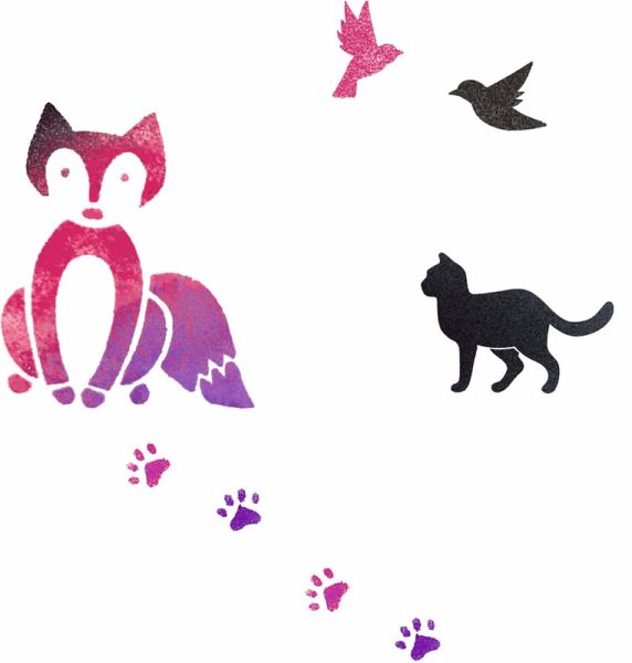 Set mit 5 Stiften, 6 Motiv-Vorlagen und Anleitung für kreativen Airbrush-Spaß auf Papier.
